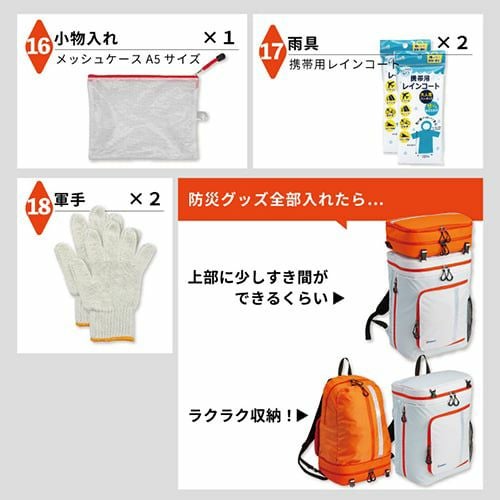 必要なものがセットになった防災リュックを買ってから自分好みに追加しても、リュックだけ購入してお好みにカスタマイズして備えても、どちらもとても効果的です。