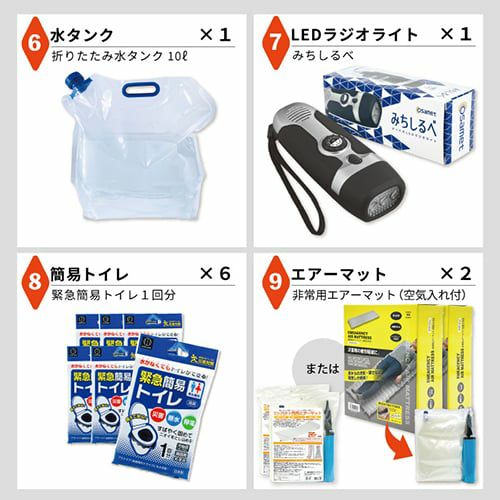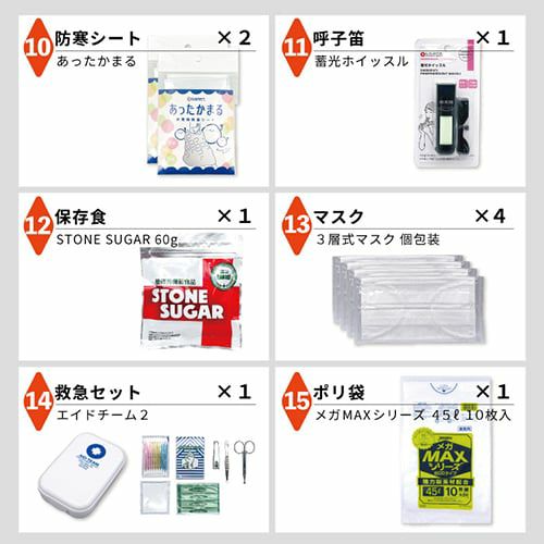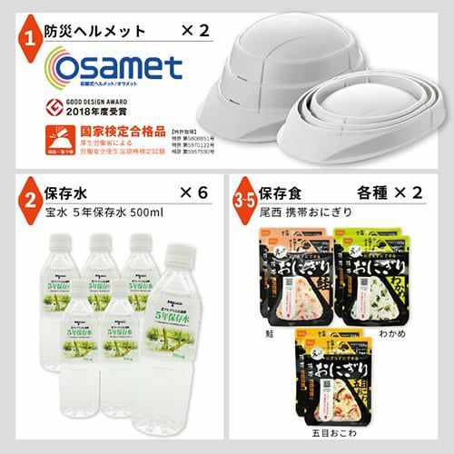 コンパクトに折りたためるヘルメット、【オサメット】が2個付属!これだけで準備万端な防災リュック!