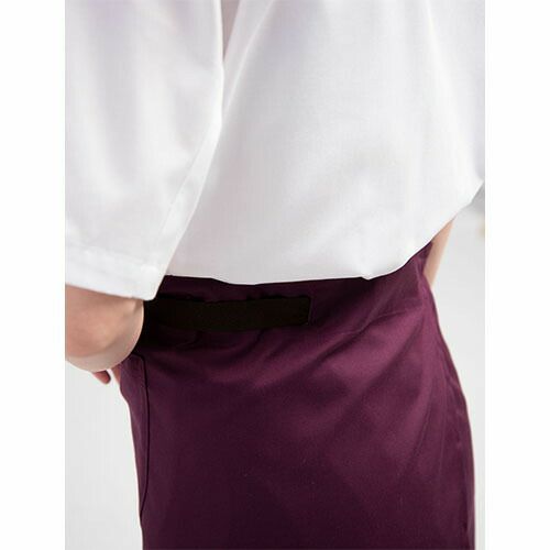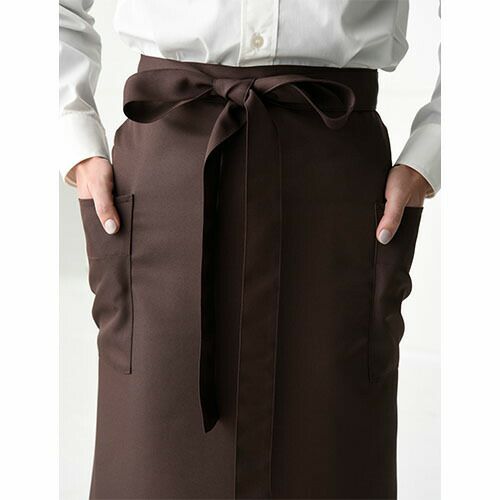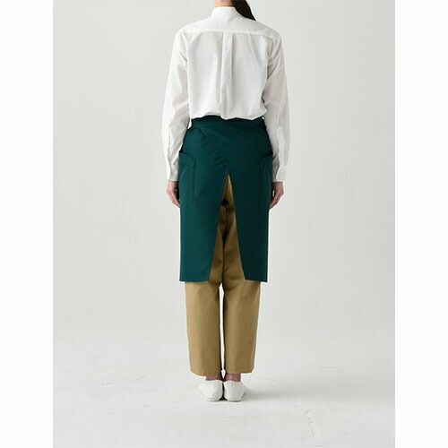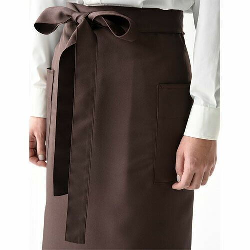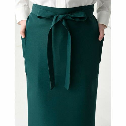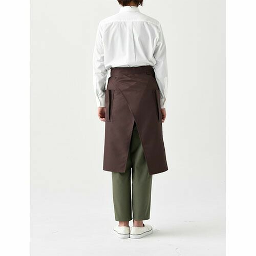 シックな色合いと丈感にこだわった「NEWスタンダードエプロン(腰下)」丈夫な素材でありながら、まるでシルクの様な質感。コーディネートし易いシンプルで美しいシルエット。 新定番エプロンシリーズ「NEWスタンダード腰下カラーエプロン」は、ポリエステル100%の丈夫な素材でありながら、滑らかで落ち感と光沢感のあるシルクの様な質感です。丈は着用する人の身長によってぴったりな長さを選べるよう、ショート、ミドル、ロングの3種類をご用意し、それぞれの丈感にもこだわりました。こちらのミドル丈のエプロンは、左右のポケットの用途の違いに着目。右側はペン差し付きのパッチポケットに、左側は主張しない玉縁ポケットにし、デザイン面でもポイントにしています。ユニフォームにおいて、サイズ選びは重要です。エプロンも着用する人の身長とエプロンの丈のバランスによって、その印象は全く変わります。この腰下エプロンは、素材感を活かしたシンプルなデザインのため、少し長めのシルエットになる様に着用していただきたいエプロンです。そのためミドルとロングの丈違いをご用意していますので、ぜひ身長に合った丈サイズを選んでください。カラーパレットは特に濃色の色表現にこだわって、白や黒のフォーマルなシャツはもちろん、私服をベースにした仕事着とも相性の良い、シックで落ち着いた色で揃えました。 特に色の濃度にこだわって、大人っぽさとカルチャーの深さを感じる様なシーンにオススメします。