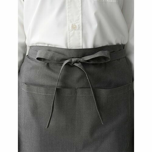 使いやすい定番のソムリエエプロン 便利性を考え、手を入れやすいポケットを付けました。この素材は制電・撥水・撥油加工が施してあります。