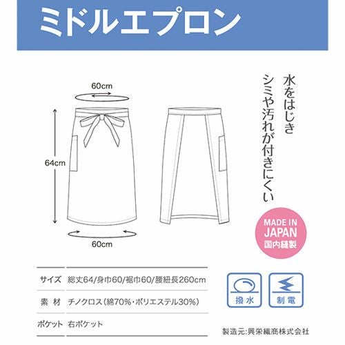 他の画像を見る 【メール便対応】エプロン 前掛 制服 ユニフォーム ミドル丈 興栄繊商 KOEI 厨房腰下前掛け Mサイズ MB332 飲食店 ユニフォーム カフェ レストラン バー 居酒屋 ソムリエ おしゃれ かわいい 可愛い かっこいい業務用 シンプル 定番 メーカー希望小売価格 ¥ 2,035 特別価格 ¥ 1,030 税込 縮みを抑えた厚手のカツラギ綿100%生地を使用 詳細を見る お気に入りに登録する