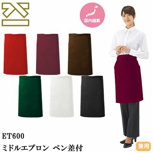 他の画像を見る 【メール便対応】エプロン 前掛 制服 ユニフォーム ミドル丈 興栄繊商 KOEI ミドルエプロン ペン差付 LET600-0、LET600-2、LET600-3、LET600-WI、LET600-GR、LET600-RE 飲食店 ユニフォーム カフェ レストラン バー 居酒屋 ソムリエ おしゃれ かわいい 可愛い かっこいい業務用 シンプル 定番 特別価格 ¥ 1,830 税込 使いやすさと品質にこだわった日本製エプロン。シワになりにくく、お手入れも簡単! 右側に使い勝手の良い2段ポケットがあります。ずれにくい腰ひもだけでなく、破れにくい縫製も魅力的。撥水・制電素材使用。 詳細を見る お気に入りに登録する