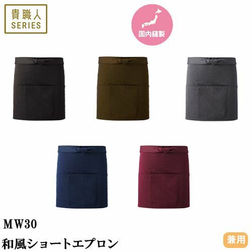しっかりとした厚みで高級感のある和風スタイルを演出。中央に3分割された大きめのポケットは、ほころびやすい箇所をカン止めで補強しています。熱にも強く、コットンの質感にあふれた和風エプロンです。