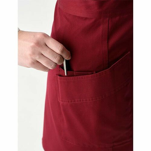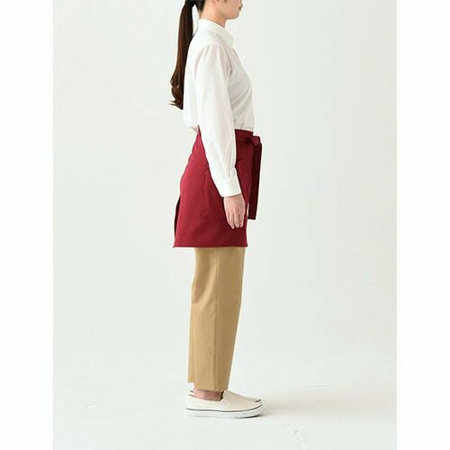 新品時は生地が硬めに感じますが使い込んでいくと適度な風合いになっていきます。定番的なデザイン、ショートエプロンです。右ポケット内にはペン差し用ポケットあり。