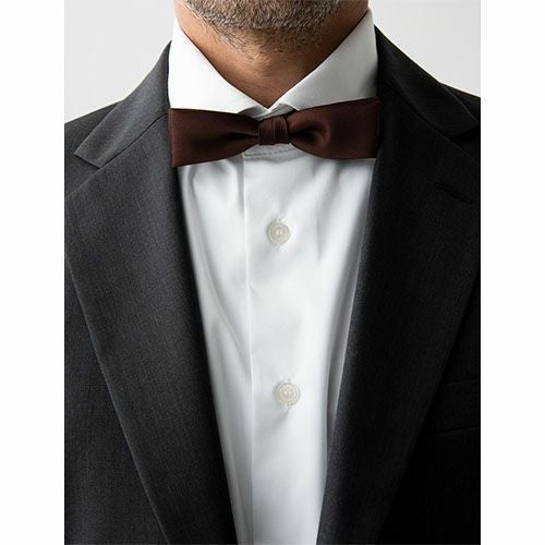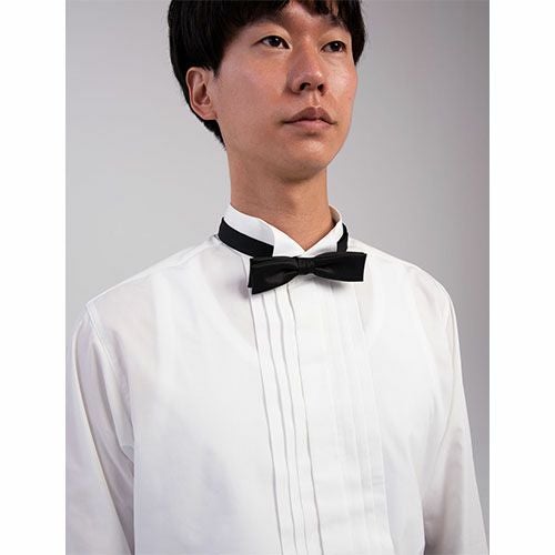 細目のストレートエンド型、カジュアルな蝶ネクタイです。 サテン織りによる光沢感が本物のシルクのように見えます。パーティーシーンなどのサービス現場などで着用することをオススメします。