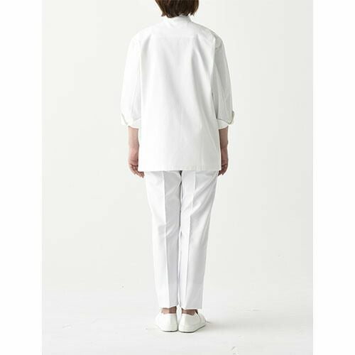 他の画像を見る セブンユニフォーム 業務用 厨房服 調理服 コックコート 長袖 QA7367 キッチン スタッフ シェフ 制服 ユニフォーム 男女兼用 綿100 制菌 制電 ストレッチ 動きやすい おしゃれ 飲食店 厨房服 調理服 レストラン フレンチ イタリアン 中華 かっこいい ブランド 特別価格 ¥ 8,662 税込 薄く丈夫な新開発素材「ライトツイル」 厨房内は火だけでなく、設備熱や人の熱気など、様々な理由からとても暑い環境です。「出来るだけ涼しいコックコートが欲しい」というリアルな現場の皆様のお声から生まれたのがこの「涼感コックコート シリーズ」。暑さに対応するため生地を薄く、通気性を良くすることで懸念されたのがリネン洗濯への耐久性。“涼しく”て“洗濯耐久性”が有る、この2つの条件をクリアする新素材として開発に成功したのが「ライトツイル [ポリエステル70%・綿30%]」という生地です。耐久性の高い素材は通常ポリエステル高混率であることが多いのですが、新開発のライトツイルは綿リッチな素材。着心地が良く、見た目もナチュラルな風合いの生地となりました。細部のデザインにもこだわり、通常より小さな組み紐ボタンを付けるなど、ワークスタイルを残しつつもエレガントな雰囲気を漂わせるシリーズとなっています。薄手の生地ですが防透・UVカット加工を施しているので、薄手でも肌着が透ける心配もなく、汗をかきやすい夏場や暑い場所でも安心です。薄手でありながら耐久性を備えた「涼感コックコート シリーズ」は、蒸し暑い厨房や、夏場のオープンキッチンなどで働くスタッフに最適なアイテムです。ぜひ一度袖を通して、その涼しさ・着心地を体感してください。 詳細を見る お気に入りに登録する