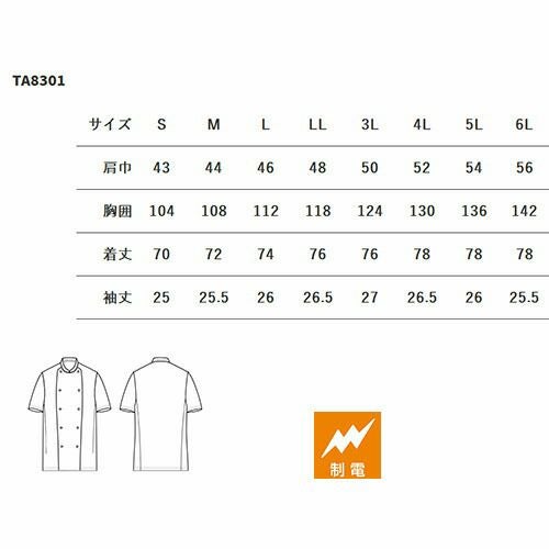 他の画像を見る セブンユニフォーム 業務用 厨房服 調理服 コックコート 半袖 TA8301 キッチン スタッフ シェフ 制服 ユニフォーム 男女兼用 メンズ レディース 制電 おしゃれ 飲食店 厨房服 調理服 レストラン フレンチ イタリアン 中華 かっこいい プロ仕様 ブランド 老舗 特別価格 ¥ 5,234 税込 詳細を見る お気に入りに登録する