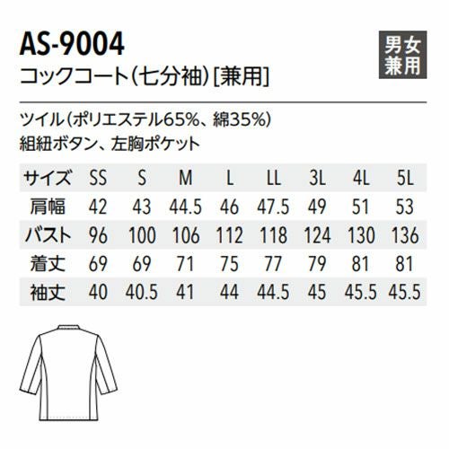 他の画像を見る コックコート 七分袖 7分袖 男女兼用 白衣 制服 ユニフォーム シェフ チトセ アルベ arbe AS-9004 メンズ レディース 飲食店 厨房服 調理服 レストラン カフェ フレンチ イタリアン 和食 中華 おしゃれ かわいい かっこいい 特別価格 ¥ 3,070 税込 動きや すい七分袖のシング ル 合 わ せコックコート。 お肉や お惣菜を扱う食のプロフェッショナルにおすすめの、コックコートスタイル 。 詳細を見る お気に入りに登録する