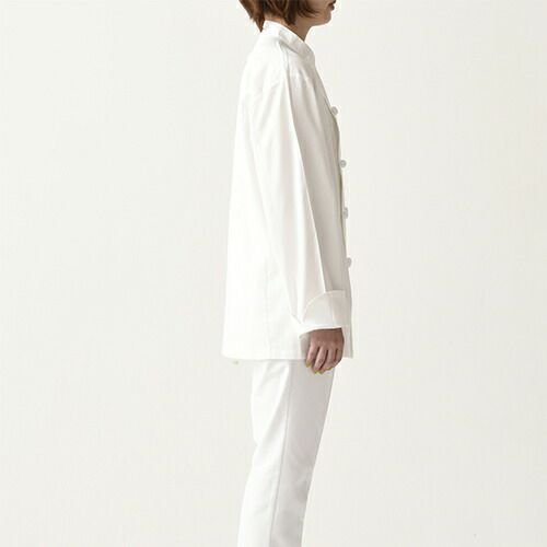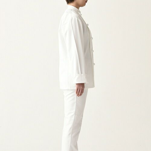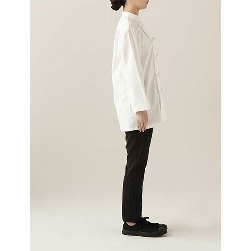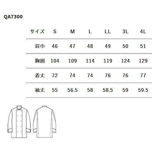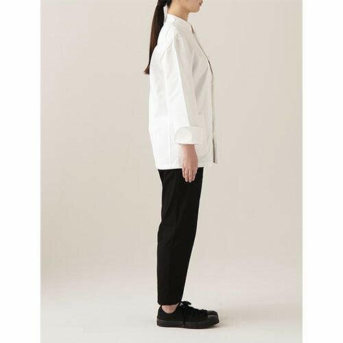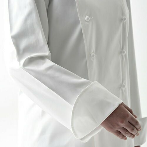 他の画像を見る セブンユニフォーム 業務用 厨房服 調理服 コックコート 長袖 QA7367 キッチン スタッフ シェフ 制服 ユニフォーム 男女兼用 綿100 制菌 制電 ストレッチ 動きやすい おしゃれ 飲食店 厨房服 調理服 レストラン フレンチ イタリアン 中華 かっこいい ブランド 特別価格 ¥ 8,662 税込 薄く丈夫な新開発素材「ライトツイル」 厨房内は火だけでなく、設備熱や人の熱気など、様々な理由からとても暑い環境です。「出来るだけ涼しいコックコートが欲しい」というリアルな現場の皆様のお声から生まれたのがこの「涼感コックコート シリーズ」。暑さに対応するため生地を薄く、通気性を良くすることで懸念されたのがリネン洗濯への耐久性。“涼しく”て“洗濯耐久性”が有る、この2つの条件をクリアする新素材として開発に成功したのが「ライトツイル [ポリエステル70%・綿30%]」という生地です。耐久性の高い素材は通常ポリエステル高混率であることが多いのですが、新開発のライトツイルは綿リッチな素材。着心地が良く、見た目もナチュラルな風合いの生地となりました。細部のデザインにもこだわり、通常より小さな組み紐ボタンを付けるなど、ワークスタイルを残しつつもエレガントな雰囲気を漂わせるシリーズとなっています。薄手の生地ですが防透・UVカット加工を施しているので、薄手でも肌着が透ける心配もなく、汗をかきやすい夏場や暑い場所でも安心です。薄手でありながら耐久性を備えた「涼感コックコート シリーズ」は、蒸し暑い厨房や、夏場のオープンキッチンなどで働くスタッフに最適なアイテムです。ぜひ一度袖を通して、その涼しさ・着心地を体感してください。 詳細を見る お気に入りに登録する
