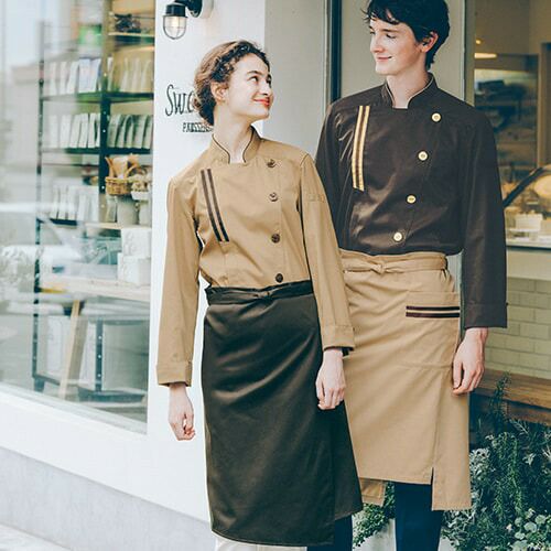 他の画像を見る 制服 ユニフォーム シェフ 住商モンブラン コックコート 長袖 BW6501-0・1・7・8 メンズ レディース 飲食店 厨房服 調理服 レストラン フレンチ イタリアン 中華 おしゃれ かっこいい プロ仕様 高級 通販 特別価格 ¥ 6,569 税込 甘さをプラスした自然はテイスト。柔らかなカラーに、タウンウェアの要素を取り入れたナチュラル&スウィートなデザイン。女性をメインターゲットにしたスウィーツやオーガニックフードのお店や、ナチュラルテイストの店内に映えるデザイン。 ベースはシンプルなコックコートながら、配色テープのあしらいや立体的なボタン、比翼の合わせなど凝ったディテールをプラス。上半身に視線を集める、厨房でもホールでも映える一着。 詳細を見る お気に入りに登録する