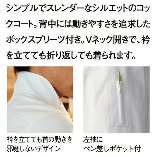 他の画像を見る 制服 ユニフォーム シェフ KAZEN カゼン ストレッチコックコート 長袖 409-60 襟付き 飲食店 厨房服 調理服 コック服 レストラン フレンチ イタリアン 中華 おしゃれ かわいい かっこいい プロ仕様 ストレッチ 伸縮性 吸汗 快適 制電 特別価格 ¥ 7,358 税込 シンプルでスレンダーなシルエットのコックコート 背中には動きやすさを追求したボックスプリーツ付き。Vネック開きで、衿を立てても折り返しても着られます。 詳細を見る お気に入りに登録する