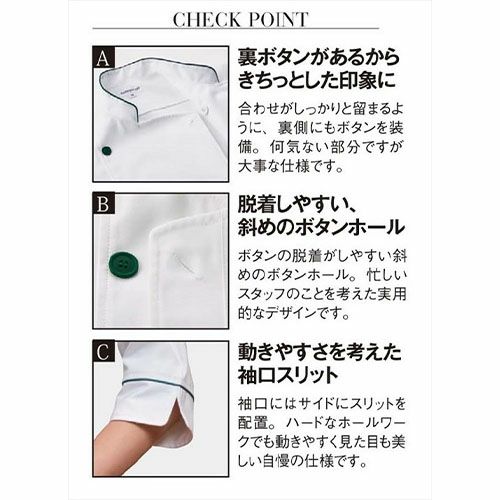 他の画像を見る 制服 ユニフォーム シェフ KAZEN カゼン シャツコート(男女兼用) 419-25 七分袖 襟付き 飲食店 厨房服 調理服 コック服 レストラン フレンチ イタリアン 中華 おしゃれ かわいい 可愛い かっこいい チェック ゆったり 吸汗 快適 特別価格 ¥ 4,779 税込 第一ボタンを留めればきちんとした印象に、外すと開襟シャツにもなるシャツコート 詳細を見る お気に入りに登録する