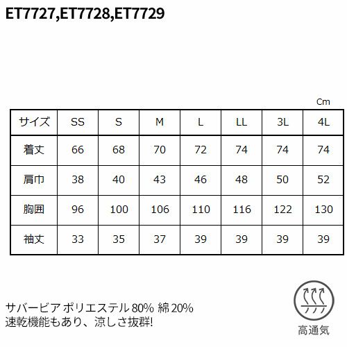 他の画像を見る 制服 ユニフォーム シェフ ET7730 ET7731 ET7732 サーヴォ Servo 7分袖 快適 清潔 飲食店 厨房服 調理服 レストラン フレンチ イタリアン 中華 おしゃれ かっこいい プロ仕様 消臭 動きやすい ショップコート 特別価格 ¥ 6,691 税込 消臭機能に、動きやすさ、スッキリ細見え効果も叶えるショップコート スマートかつスリムなスッキリシルエットなのに、動きやすく設計された人気のショップコートです。袖底とウエストのポイントを上に。 詳細を見る お気に入りに登録する