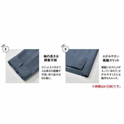 他の画像を見る 制服 ユニフォーム シェフ コックコート KAZEN カゼン 調理コート 七分袖 KZN610-10、KZN610-15 飲食店 厨房服 調理服 レストラン フレンチ イタリアン 中華 おしゃれ かっこいい プロ仕様 ストレッチ 伸縮性 吸汗 快適 制電 特別価格 ¥ 5,194 税込 和洋折衷のボーダーレス調理コート。定番デザインを現代風にアレンジ。 詳細を見る お気に入りに登録する
