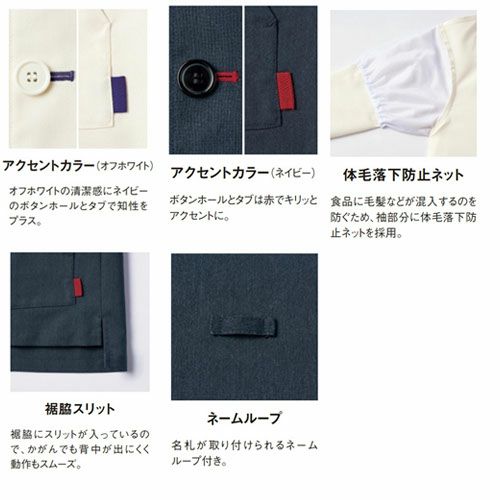 他の画像を見る 制服 ユニフォーム シェフ SJAU-2005 サーヴォ Servo 7分袖 快適 清潔 飲食店 厨房服 調理服 レストラン フレンチ イタリアン 中華 おしゃれ かっこいい プロ仕様 防汚 防脱色 白 紺 ショップコート 特別価格 ¥ 6,875 税込 防汚・防脱色加工を施したデザイン性の高いショップコート 接客を意識したデザイン性の高いショップコート、袖の内側には体毛落下防止のネットがついたHACCP支援アイテムです。左胸にはネームループ、両腰にパッチポケットが付いています。 詳細を見る お気に入りに登録する