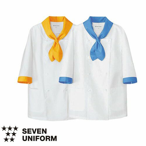 他の画像を見る セブンユニフォーム 業務用 厨房服 調理服 コート 長袖 BA1086 コックコート 7分袖 キッチン スタッフ シェフ 制服 ユニフォーム 男女兼用 メンズ レディース おしゃれ 飲食店 厨房服 調理服 レストラン フレンチ イタリアン 中華 かっこいい ブランド 老舗 特別価格 ¥ 7,176 税込 個性的なセーラー襟の調理服 「セーラーカラーコート」 白いセーラー襟が印象的なファッションウェアのような美しいコート。「セーラーカラーコート」は、さりげなくステッチラインの入ったセーラー襟が印象的な、オフホワイトのサービス・コックコート。シンプルで柔らかなシルエットは、さまざまなアイテムと組み合わせ、個性的なコーディネートが可能です。左袖にはポケットを備えており、スリット入りの袖口は伸ばして長袖丈になる機能的なコートです。ポリエステルと綿の混紡素材は洗濯性がよく、シワが出にくいのが特長です。 詳細を見る お気に入りに登録する