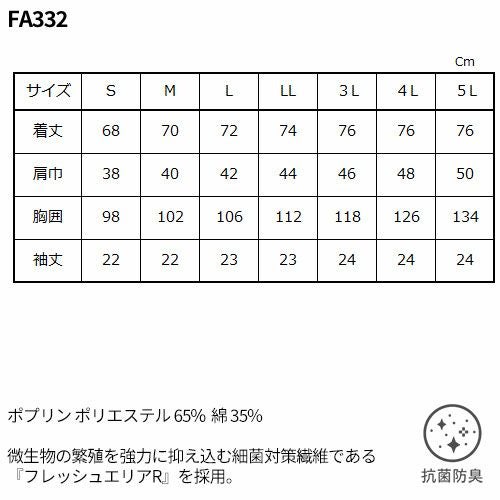 白衣 調理白衣 制服 ユニフォーム FA332 サーヴォ Servo 清潔 定番 飲食店 厨房服 調理服 寿司屋 和食店 割烹 料亭 居酒屋 おしゃれ かっこいい プロ仕様 和 おもてなし 女性用衿無し(半袖)