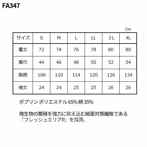 白衣 調理白衣 制服 ユニフォーム FA347 サーヴォ Servo 清潔 定番 飲食店 厨房服 調理服 寿司屋 和食店 割烹 料亭 居酒屋 おしゃれ かっこいい プロ仕様 和 おもてなし 男性用衿無し(半袖)