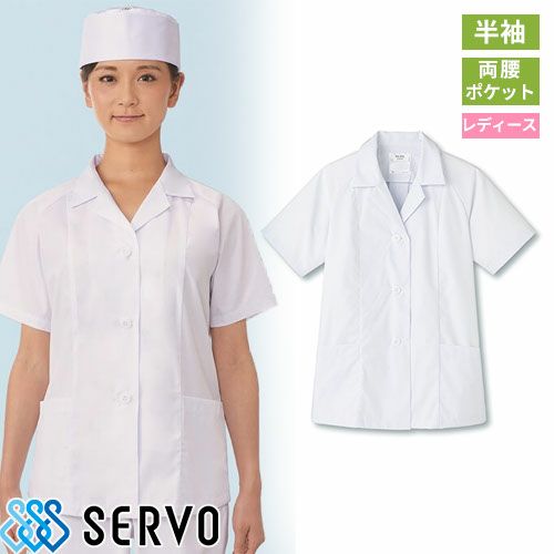 白衣 調理白衣 制服 ユニフォーム FA349 サーヴォ Servo 清潔 定番 飲食店 厨房服 調理服 寿司屋 和食店 割烹 料亭 居酒屋 おしゃれ かっこいい プロ仕様 和 おもてなし 女性用衿無し(半袖)