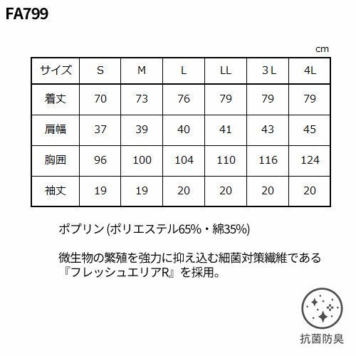 誇り高き和の心をもって、 最上級のおもてなしを。 『フレッシュエリアR』は洗濯を繰り返しても抗菌力はほとんど落ちず、また、皮膚刺激も少ないため、安心して着用いただけます。 ラグラン袖,両腰にポケット付き、袖口はゴム仕様になっています。