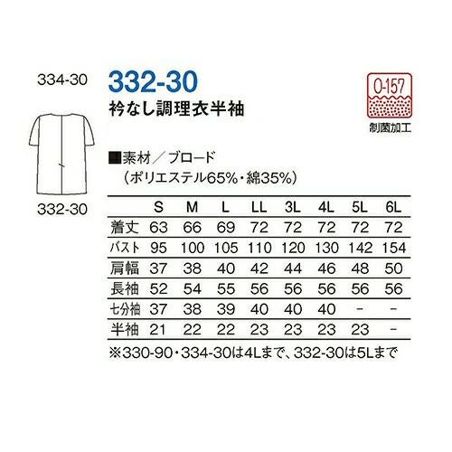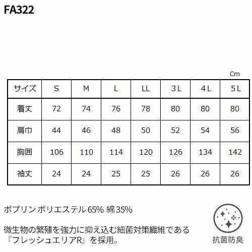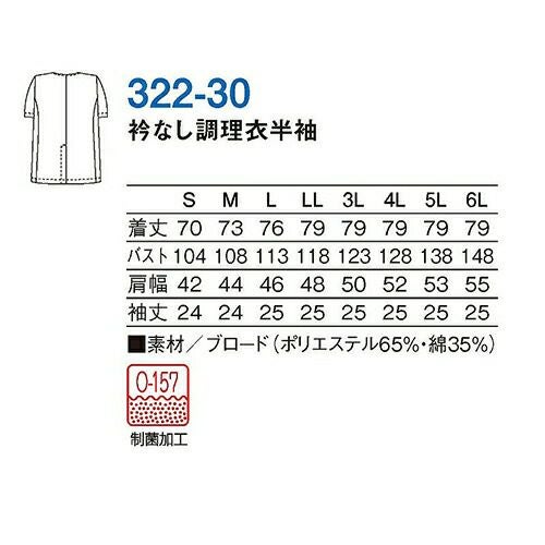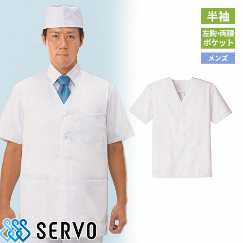 白衣 調理白衣 制服 ユニフォーム FA322 サーヴォ Servo 清潔 定番 飲食店 厨房服 調理服 寿司屋 和食店 割烹 料亭 居酒屋 おしゃれ かっこいい プロ仕様 和 おもてなし 男性用衿無し(半袖)