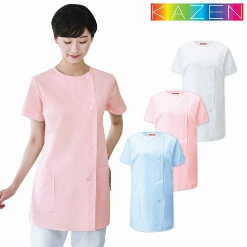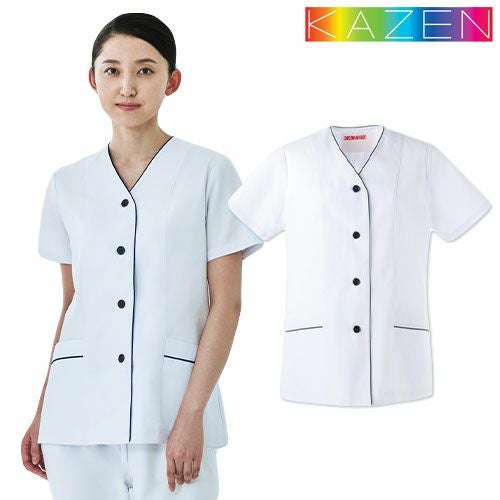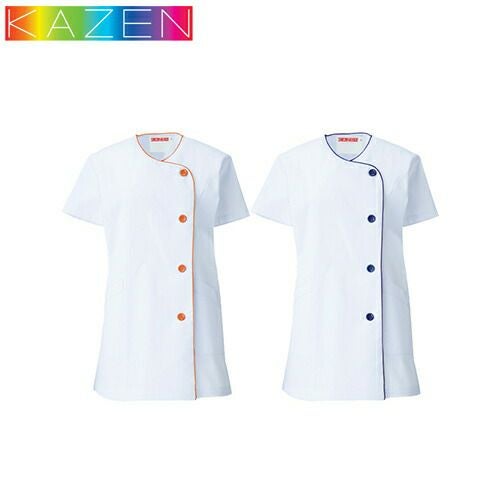 白衣 調理白衣 制服 ユニフォーム KAZEN カゼン 女子調理衣 半袖 APK1355 飲食店 女性用 レディース 厨房服 調理服 寿司屋 和食店 割烹 料亭 中華 居酒屋 おしゃれ かわいい 制菌 吸汗 快適