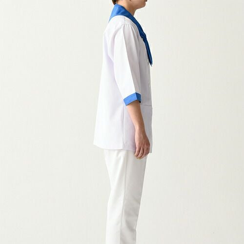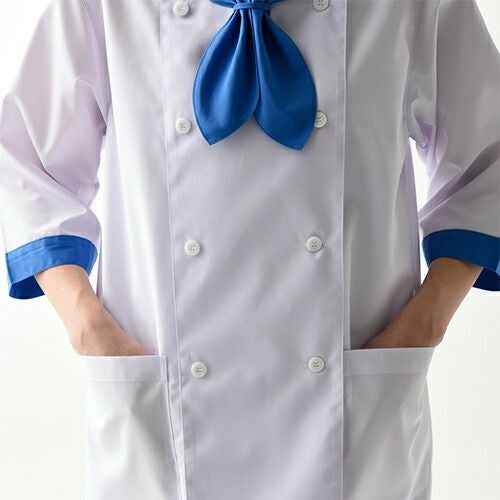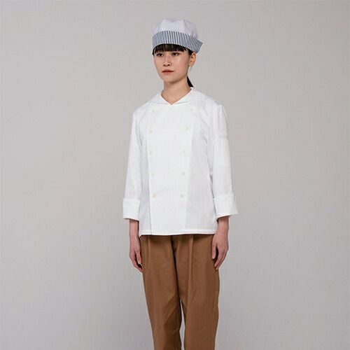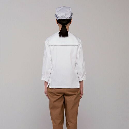 他の画像を見る セブンユニフォーム 業務用 厨房服 調理服 コート 長袖 BA1086 コックコート 7分袖 キッチン スタッフ シェフ 制服 ユニフォーム 男女兼用 メンズ レディース おしゃれ 飲食店 厨房服 調理服 レストラン フレンチ イタリアン 中華 かっこいい ブランド 老舗 特別価格 ¥ 7,176 税込 個性的なセーラー襟の調理服 「セーラーカラーコート」 白いセーラー襟が印象的なファッションウェアのような美しいコート。「セーラーカラーコート」は、さりげなくステッチラインの入ったセーラー襟が印象的な、オフホワイトのサービス・コックコート。シンプルで柔らかなシルエットは、さまざまなアイテムと組み合わせ、個性的なコーディネートが可能です。左袖にはポケットを備えており、スリット入りの袖口は伸ばして長袖丈になる機能的なコートです。ポリエステルと綿の混紡素材は洗濯性がよく、シワが出にくいのが特長です。 詳細を見る お気に入りに登録する