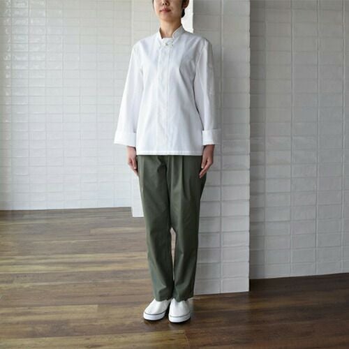 他の画像を見る セブンユニフォーム 業務用 厨房服 調理服 コート 九分袖 EA3078 調理白衣 9分袖 制服 ユニフォーム 男女兼用 メンズ レディース 抗菌 防臭 撥水 撥油 おしゃれ 飲食店 厨房服 調理服 寿司屋 和食店 割烹 料亭 居酒屋 かっこいい プロ仕様 ブランド 老舗 特別価格 ¥ 7,226 税込 和の要素に新しいモダンなディテール抗菌&防臭性とナチュラルな風合い 昨今増える、和モダンや古民家改装などの新店舗。和の要素を持ちつつもモダンな雰囲気な、様々に融合するコンセプトには、今までの「和のお店といえば作務衣」ではカバーしきれません。そんなニーズに応えるべく、和に留まらず使い方によっては洋にも汎用できる新たな和シリーズを開発しました。■和の雰囲気を上衣の衿のディテールで演出目まぐるしく進化する和食の業態で、特にグローバル化に伴う “和×洋” のスタイルの多様化、進化が昨今とても新しく魅力的に映ります。材料や調理方法だけでなく、空間や調度品までトータルでの斬新な体験を提供するお店が増えています。ユニフォームでは、洋のコックコートに対して和では白衣コートがそれにあたりますが、昨今の和食の多様化・進化に合わせ、この白衣コートの新商品を新たに開発しました。主に纏った際に表現のメインになる衿、色の2つのポイントに注力。生地には細菌の増殖と悪臭の発生を強力に抑制する、抗菌生地「ナノツイル」を使用した和装上衣とエプロンを展開するシリーズ。和風なナチュラルカラーのバリエーションをご用意し、トータルコーディネート含め新しいモダンな和のスタイルを提案します。■馴染みのある和カラーにモダンなテイスト色展開は全部で5色。定番のホワイト・ネイビー・ブラックに加えて新色のワインとグレージュ。落ち着いたニュアンスカラーは、日本人に馴染みのあるカラーでありながらも、モダンな内装にも主張しすぎず優しく馴染みます。上衣とエプロンを同色でまとめても良いですし、色を組み合わせてもどの色合わせも新鮮な表情になります。 詳細を見る お気に入りに登録する