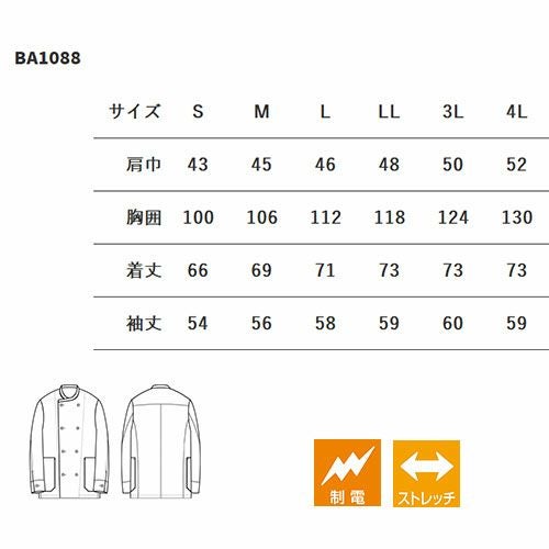 他の画像を見る セブンユニフォーム 業務用 厨房服 調理服 制菌コート 七分袖 BA1217 コックコート 7分袖 キッチン スタッフ シェフ 制服 ユニフォーム 男女兼用 メンズ レディース 制菌 おしゃれ 飲食店 厨房服 調理服 レストラン フレンチ イタリアン 中華 かっこいい 老舗 特別価格 ¥ 6,433 税込 詳細を見る お気に入りに登録する