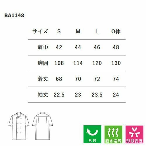 他の画像を見る セブンユニフォーム 業務用 厨房服 調理服 コックシャツ 半袖 BA1148 キッチン スタッフ シェフ 制服 ユニフォーム 男女兼用 メンズ レディース 汚れ 落としやすい 速乾 形態安定 シワになりにくい おしゃれ 飲食店 厨房服 調理服 レストラン カフェ かっこいい 特別価格 ¥ 6,675 税込 抜群の形態安定性が特長のタフ素材を使用したシリーズ! 洗濯ジワや型くずれが起こりにくく、ノープレスでも美しい仕上がり。風合いも柔らかで、色・柄・デザインも豊富に揃っています。■工業洗濯に強くメンテナンスの負担を軽減洗濯によるシワや縮み、型くずれがほとんどなく、プリーツや折り目が消えることもありません。ノープレス、トンネルフィニッシャーのみでも美しく仕上がります。■形態安定だけではないタフの多彩な機能性優れた吸水性があり、長期間使用してもその機能は低下しません。また洗濯の際は汚れが落ちやすく、染めつきや色落ちもほとんどなし。毛玉や静電気も発生しません。 詳細を見る お気に入りに登録する