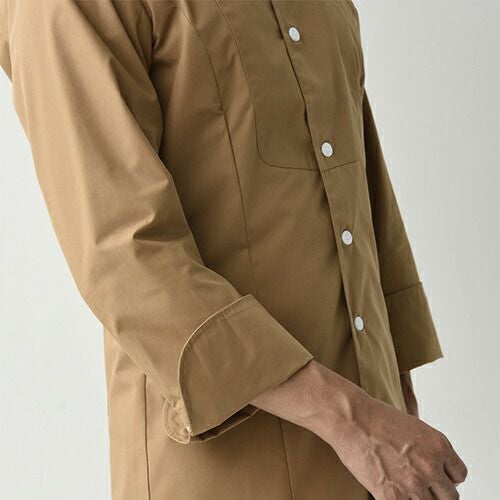 他の画像を見る セブンユニフォーム 業務用 厨房服 調理服 コート 長袖 BA1056 コックコート キッチン スタッフ シェフ 制服 ユニフォーム 男女兼用 メンズ レディース おしゃれ 飲食店 厨房服 調理服 レストラン フレンチ イタリアン 中華 かっこいい プロ仕様 ブランド 老舗 特別価格 ¥ 6,645 税込 衿付デザインや異なるボタン間隔などデザインにこだわったスタイリッシュなデザイン!洗練されたコックコートディテールの個性的な「モダンサービスコート」 モダンサービスコートシリーズ「シングルボタンコート」と「衿付ダブルボタンコート」は、フロアでの配膳や対面カウンターでのサービスだけでなく、キッチンでの調理にも対応できるコックコートディテールのサービスコート。デパ地下のデリカウンターの様な、清潔感のある調理服が必要な場所にもぴったりのデザインです。落ち着いた色合いのカラーバリエーションは、様々なコーディネートにも対応し、洗練された内装の今時のカフェやベーカリー、エレガントなレストランなどにも最適です。どの色も、ボタンは白に統一し、エレガントに配したボタン間隔と清潔感をデザイン的に強調しています。■スタイリッシュなシルエットのシングルボタンコートシングルボタンは、スタイリッシュさを強調したサービスコート。胸部とその下側で異なるボタン間隔や、胸許の切り替えなどで、エレガントさを演出しています。■個性的な衿付のダブルボタンコートダブルボタンは、コックコート的な男女共用のデザイン。ボタン間隔を狭めにするなどきっちりとした印象ながら、やさしい雰囲気に仕上げました。少し小さめの衿は半分立てても美しく着こなせるデザインになっています。 詳細を見る お気に入りに登録する