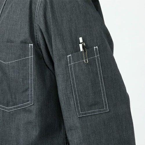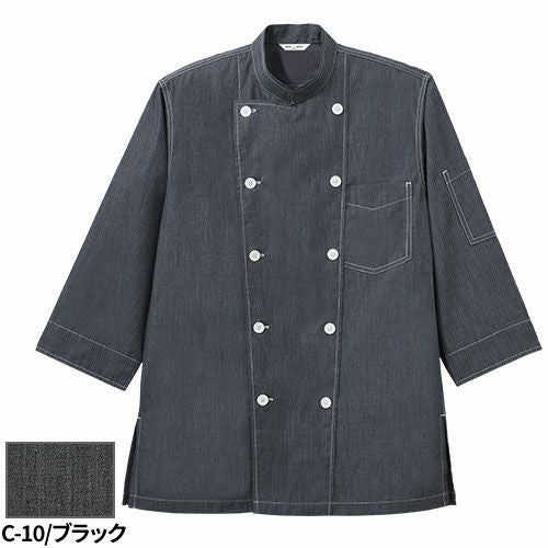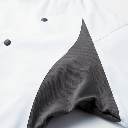 他の画像を見る 制服 ユニフォーム シェフ 住商モンブラン コックコート 7分袖 七分袖 6-1140 6-1141 メンズ レディース 飲食店 厨房服 調理服 レストラン フレンチ イタリアン 中華 おしゃれ かっこいい プロ仕様 安い 特別価格 ¥ 5,103 税込 スマートなデザインに、動きやすさと衛生機能を忍ばせた黒/グレーのコックコート。 七分袖の男女兼用コックコート。体毛の落下を防止する袖口ネット付き。左袖にペン差しポケット。動きやすさをサポートする背面プリーツ。破損しにくいスナップ・ファスナーで破損による異物落下を防止。襟裏に濃色を配色することで襟裏汚れの目立ちをカバー。 詳細を見る お気に入りに登録する