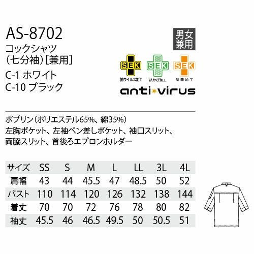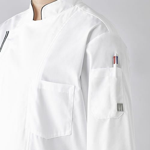 他の画像を見る 制服 ユニフォーム シェフ 住商モンブラン コックコート 7分袖 6-1131 飲食店 厨房服 調理服 レストラン フレンチ イタリアン 中華 おしゃれ かっこいい プロ仕様7分袖 快適 清潔 特別価格 ¥ 5,500 税込 スマートなデザインに、動きやすさと衛生機能を忍ばせた白のコックコート。 七分袖の男女兼用コックコート。体毛の落下を防止する袖口ネット、コートからの異物落下を防止する腰ネット付き。左袖にペン差しポケット。動きやすさをサポートする背面プリーツ。破損しにくいスナップ・ファスナーで破損による異物落下を防止。襟裏に濃色を配色することで襟裏汚れの目立ちをカバー。生地の端を表に出さず、ほつれや糸くずの発生を抑制するパイピング仕様。 詳細を見る お気に入りに登録する