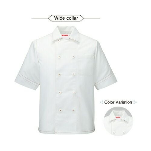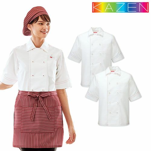 他の画像を見る 白衣 調理白衣 制服 ユニフォーム KAZEN カゼン 女子衿付調理衣 半袖 337-30・31 飲食店 女性用 レディース 厨房服 調理服 寿司屋 和食店 割烹 料亭 中華 居酒屋 おしゃれ かわいい 人気 制菌 袖口ゴム 特別価格 ¥ 2,750 税込 水仕事に便利な袖口ゴム入り。 詳細を見る お気に入りに登録する