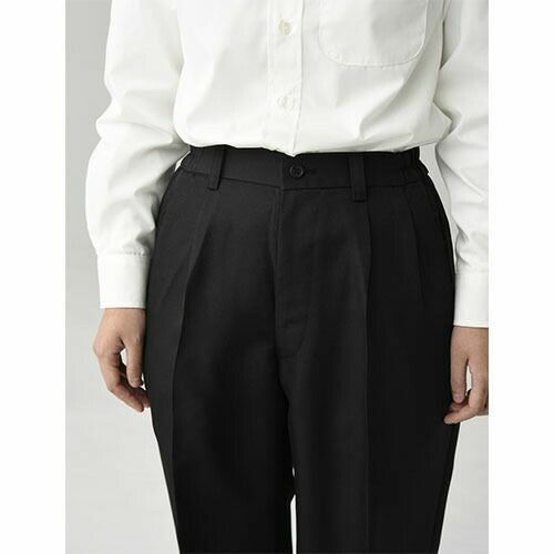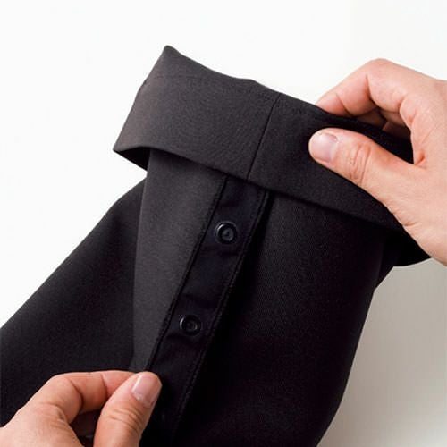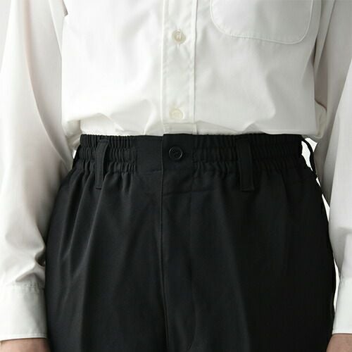 ユニフォームから始める、品格漂うおもてなし フォーマルにだって相性抜群!厚手でしなやか、身体の動きによく馴染むトロマット素材。ウエストに程よくフィットする脇ゴム仕様。