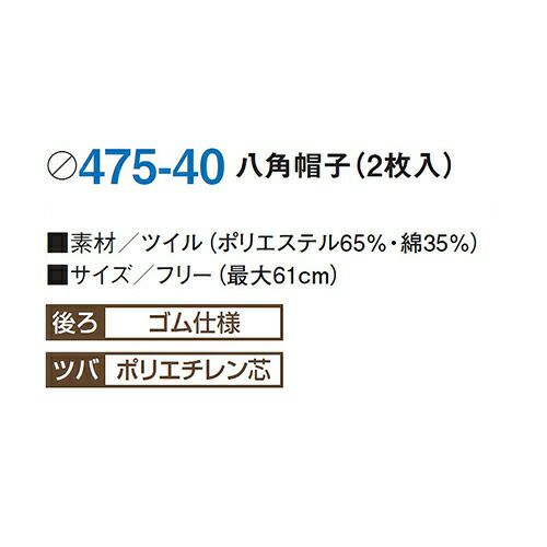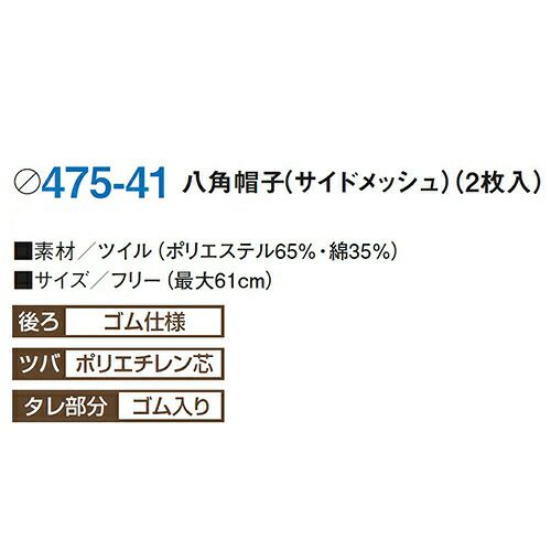 他の画像を見る 【メール便対応】 衛生帽子 衛生キャップ 八角帽子 サイドメッシュ 2枚 帽子 キャップ 衛生帽 食品 白衣 衛生衣 男性 女性 メンズ レディース KAZEN カゼン 475-41 たれ付き ゴム 食品工場 食品加工 給食 厨房 調理 制服 ユニフォーム メーカー希望小売価格 ¥ 3,520 特別価格 ¥ 2,444 税込 耐久性に優れた定番素材を使用 タレ部分はゴム入りで、着用感に配慮し、髪の毛を包み込むよう、シャリ感のある形となっております。後ろゴム仕様となっております。 カートに入れる お気に入りに登録する