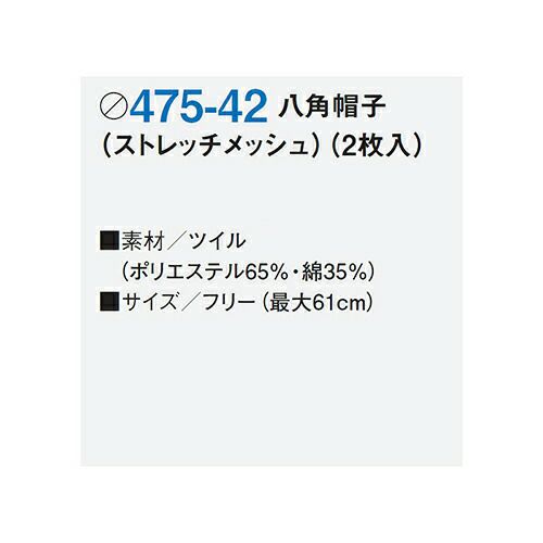 他の画像を見る 【メール便対応】 衛生帽子 衛生キャップ 八角帽子 サイドメッシュ 2枚 帽子 キャップ 衛生帽 食品 白衣 衛生衣 男性 女性 メンズ レディース KAZEN カゼン 475-42 たれ付き 食品工場 食品加工 給食用 厨房 調理 制服 ユニフォーム ストレッチ メーカー希望小売価格 ¥ 3,520 特別価格 ¥ 2,444 税込 耐久性に優れた定番素材を使用 髪の毛にフィットするストレッチメッシュを使用し、ストレッチ性と通気性により違和感なく異物混入を防止してくれます。後ろゴム仕様となっております。 カートに入れる お気に入りに登録する