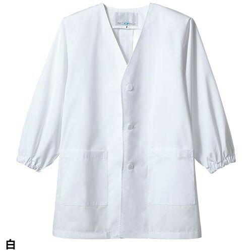 抗ウィルス加工素材を使用した、シンプルな前開きタイプの給食衣。