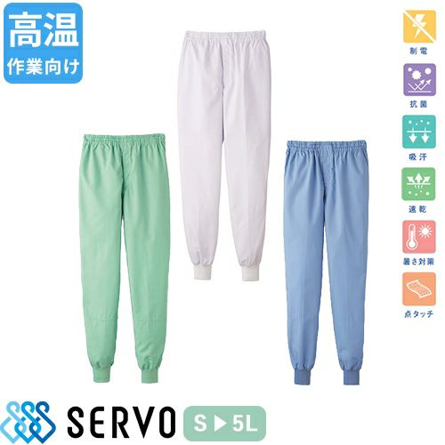 食品衛生白衣 衛生衣 作業着 作業服 FH1116 サーヴォ Servo 清潔 衛生 快適 制服 ユニフォーム 食品工場 食品加工 メンズ 常温作業場向け 抗菌 男性用パンツ