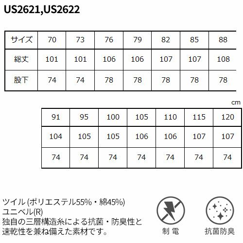 食品衛生白衣 衛生衣 作業着 作業服 US2621 US2622 サーヴォ Servo 清潔 衛生 快適 制服 ユニフォーム 食品工場 食品加工 メンズ 常温作業場向け ユニベル 抗菌 男性用パンツ