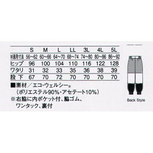 他の画像を見る 衛生衣 スラックス 男女兼用 パンツ ズボン KAZEN カゼン KZN801 白衣 食品白衣 食品衛生白衣 作業用 作業服 作業着 ユニフォーム 制服 食品 工場 食品加工 給食 調理 厨房 男性 女性 ゴム ゆったり ストレート 特別価格 ¥ 3,666 税込 ワンサイズで広範囲にカバー 「3D+プレミアムサイズ」は「動きやすさ」を追求した「3D+特殊パターン設計」に加え、サイズ集約が可能。ただ大きくするのではなく、各サイズに心地良いゆとりを生み出しました。ウエスト寸法や身長の高低差にも幅広く対応するなど、各サイズとも広範囲をカバーできるため経済的で、ユニフォームの在庫管理もラクになる2つのメリットを生み出します。 詳細を見る お気に入りに登録する