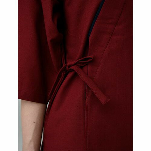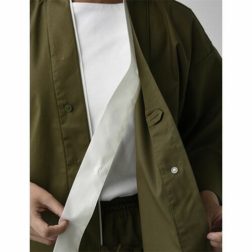 和空間にふさわしい落ち着いた色合い。前合わせの配色と二色使いの腰紐でキリッとした印象が生まれます。