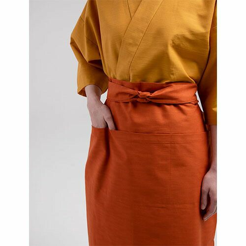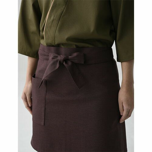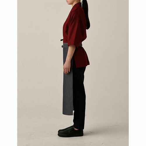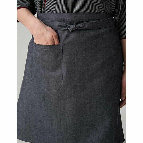 伝統の“和アイテム”帆前掛のデニム素材バージョン 薄手のデニム素材で着心地も上質。ロングorショートはお好みで。巻くだけでで和を演出できる、便利なアイテム。デニム素材でありながら、その風合いは想像より薄手です。その薄さによってサラリとした巻き心地。どちらの色味も生デニムの様な濃色で、素材の特性から通常の綿100%デニムと違い、ほぼ色落ちはしません。そのため、いつまでもクリーンな印象を保つことが出来、ホスピタリティのあるユニフォームとして最適です。
