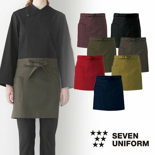 セブンユニフォーム 業務用 腰下エプロン ET3499 和風エプロン 前掛 ショート丈 ホールスタッフ 男女兼用 メンズ レディース デニム おしゃれ 飲食店 制服 ユニフォーム 居酒屋 和食店 酒屋 蕎麦屋 業務用 かわいい かっこいい ブランド 老舗