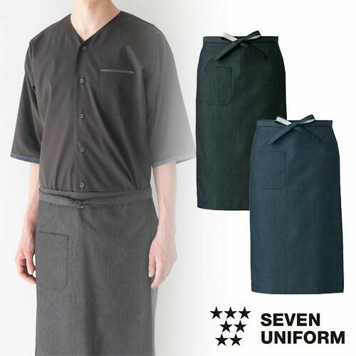 セブンユニフォーム 業務用 腰下エプロン ET3498 和風エプロン 前掛 ロング丈 ホールスタッフ 男女兼用 メンズ レディース デニム おしゃれ 飲食店 制服 ユニフォーム 居酒屋 和食店 酒屋 蕎麦屋 業務用 かわいい かっこいい ブランド 老舗