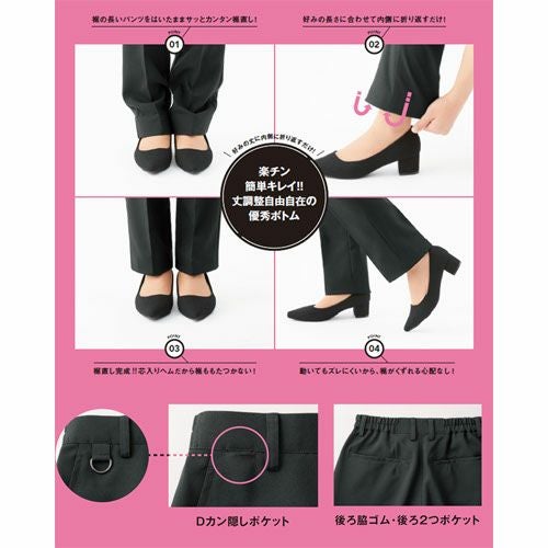 他の画像を見る 裾上げ不要 ロールイン パンツ 男女兼用 SPAU-1801 Servo サーヴォ ユニフォーム 大きいサイズ サンペックスイスト 楽ちん チノパンツ 丈調整 黒 ブラック 茶色 ブラウン 紺 ネイビー ストレッチ メンズ レディース カフェ 飲食店 レストラン ズボン 特別価格 ¥ 3,025 税込 3ステップで内側に折り込むだけで5cm間隔の裾上げが簡単に 裾上げが簡単にできるロールインパンツ(特許第6530476号/商標登録第6079198号)。裾に5cm幅の芯が貼ってあることで5cm毎に内側に折り返し、そのまま固定できる仕様です。 詳細を見る お気に入りに登録する