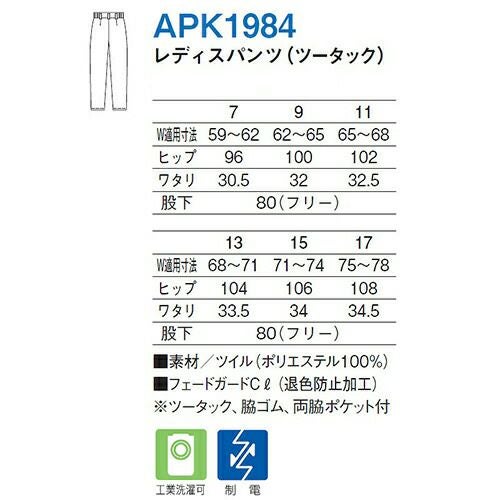 他の画像を見る パンツ ズボン APK1984 レディスパンツ(ツータック) フードユニフォーム KAZEN カゼン パンツ 飲食店 レストラン カフェ 喫茶店 キッチン 厨房 料理人 シェフ ホールスタッフ 7号~17号 ポリエステル100% ツイル 特別価格 ¥ 4,096 税込 上品な印象ながら動きやすさと耐洗濯性にもこだわり 上品で引き締まった印象を与えてくれるパンツは、レストランのホールなどにおすすめ!腰回りに余裕のあるツータック仕様で、さらに両サイドはゴム入りなので身体にフィットして動きやすい設計となっております。漂白剤による色落ちを防ぎ、繰り返しの洗濯にも強いです。 詳細を見る お気に入りに登録する