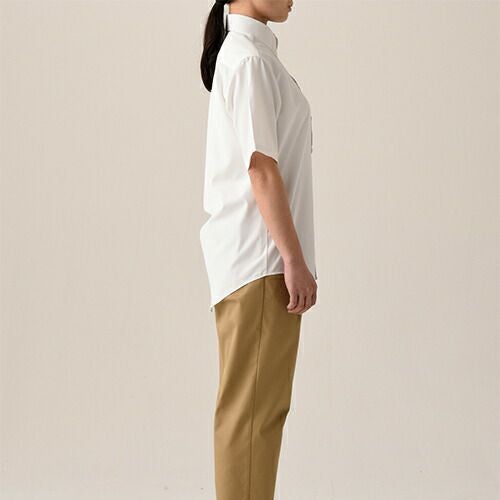 他の画像を見る セブンユニフォーム 業務用 白シャツ ホワイト 黒シャツ ブラック シャツ ブラウス ワイシャツ 抗菌ボタンダウンシャツ 半袖 CH4455 男女兼用 メンズ レディース 抗菌 防臭 おしゃれ 飲食店 制服 ユニフォーム レストラン カフェ かわいい かっこいい 老舗 特別価格 ¥ 4,461 税込 衿、袖丈、色・柄で自由に選ぶ、一人ひとりに似合うシャツシリーズ。 「新定番シャツ」は単に「誰でも着られる」のではなく「それぞれの人に似合う」シャツ。「大は小を兼ねる」より「一人ひとりにフィットする」がコンセプトです。最先端の場面・風景に美しく調和し、誇りを持って働ける。そんな時代に合った仕事着としてのシャツを目指しました。細部の仕様・デザインにこだわった「新定番シャツ」首周りのネック寸は大きすぎず、適度なフィット感で清潔な印象。台衿はネクタイ着用も想定して設計、寸法設定しました。台衿ボタンを外して着用しても、ほどよい開きです。衿の形は飽きがこないよう大きすぎず小さすぎない、クセのないデザインを選択。上品な開きを心がけました。肩巾はジャストなサイズ感で見た目にもスッキリに。袖丈もダボつかず弛みのないジャストな丈感を実現しました。全体のシルエットは、バストはもたつかないサイズ感、ウエストから裾に向けてはややタイトに設定しスッキリした見た目に。裾巾は狭めで、ボトムから出して着てもだらしなく見えません。クセのない使いやすいデザインのポケットや、ノータイでも様になるようデザインした前立てなど、さまざまなコーディネートに対応する為に、細部の仕様・デザインにこだわりました。 詳細を見る お気に入りに登録する
