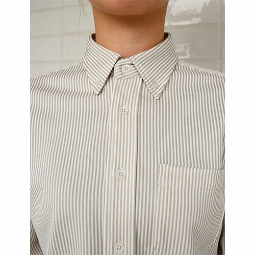 他の画像を見る シャツ ワイシャツ 住商モンブラン ストライプシャツ ボタンダウン 長袖 SS001-22・72・92 飲食店 制服 ユニフォーム メンズ レディース レストラン カフェ おしゃれ かわいい 可愛い かっこいい 特別価格 ¥ 4,400 税込 美しい立ち姿と動きやすさを両立させた長袖のストライプシャツ。袖下のマチやバックスタイルのタック位置の工夫により動きやすい機能設計です。 詳細を見る お気に入りに登録する