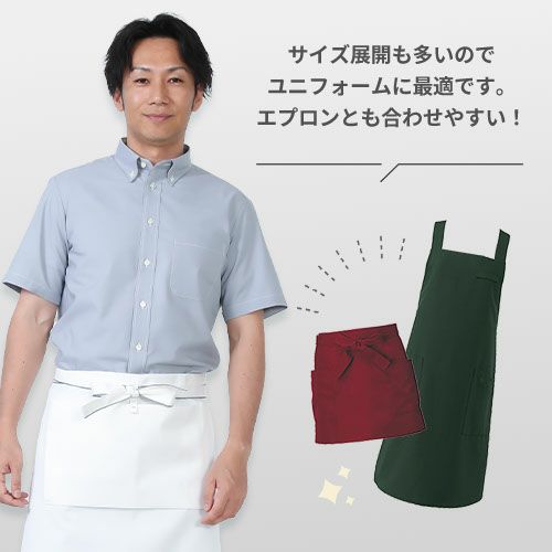 他の画像を見る シャツ メンズ レディース 半袖 ワイシャツ 無地 シンプル ボタンダウンシャツ GH7020 セブンユニフォーム 飲食店 制服 ユニフォーム レストラン カフェ ビジネス オフィスカジュアル スタッフ ホール おしゃれ かわいい かっこいい 大きいサイズ 3L 4L 5L 7L 特別価格 ¥ 3,131 税込 幅広い業界や職種でご利用いただけるこのシャツは、スタイルと機能性を兼ね備えた一枚です。10色の豊富なカラー展開で、どんな職場にもマッチします。 ■素材はオックスフォードを使用し、柔らかく快適な着心地を実現。■無地染とシャンブレー染めの2パターンの染めで豊富なカラー展開。■ポリエステル65%と綿35%の混率で、丈夫さと通気性を両立。■シワになりにくく、乾きやすく、手入れも簡単で、忙しい日々をサポート。 詳細を見る お気に入りに登録する